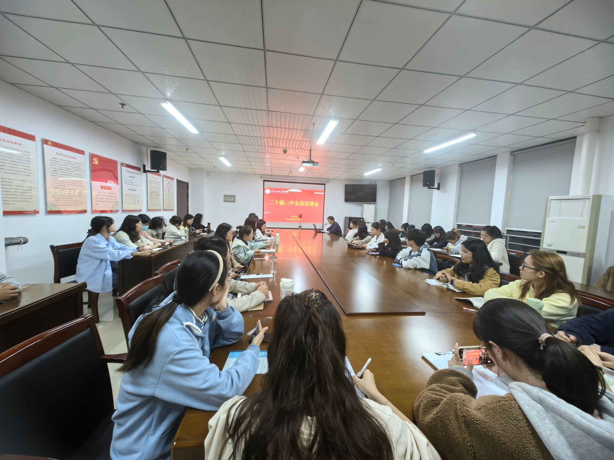 为深入学习宣传党的二十届三中全会精神,10月28日,beat365英国官方网站党委在行知楼802会议室召开学习贯彻党的二十届三中全会精神宣讲会,院党委书记许锃为学生党员作专题宣讲。