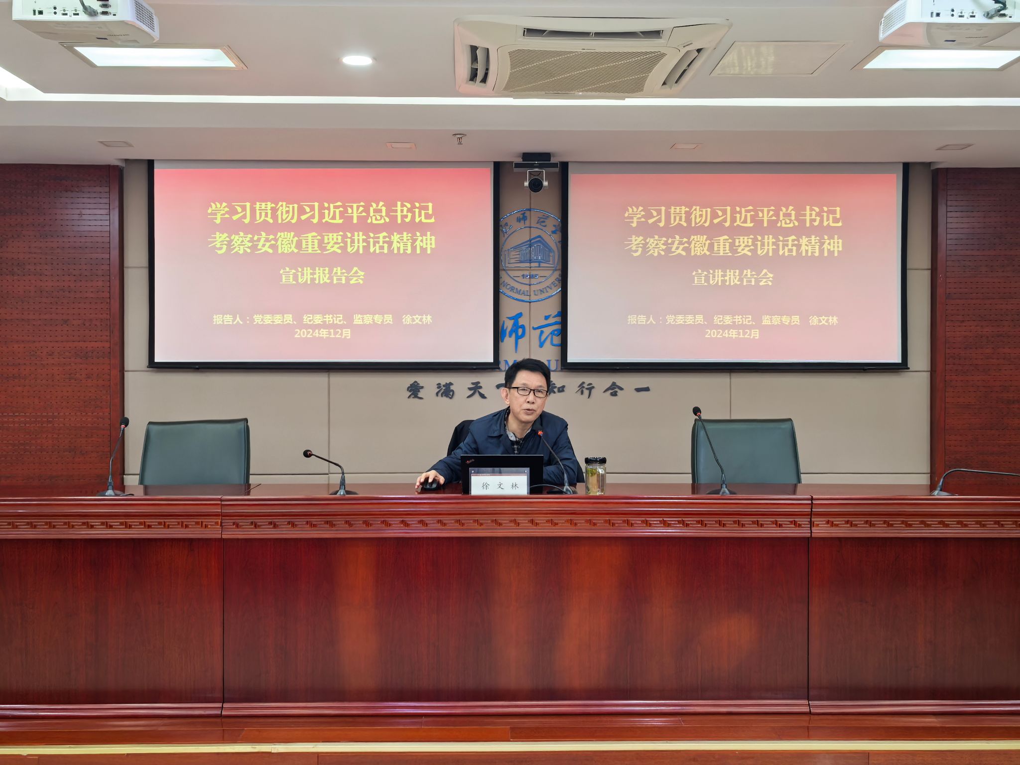 为引导广大师生深入学习宣传贯彻习近平总书记考察安徽重要讲话精神,根据学校统一安排,12月11日,院党委委员、纪委书记、监察专员徐文林为联系单位beat365英国官方网站、外国语学院和生物与食品工程学院党员作习近平总书记考察安徽重要讲话精神专题宣讲。