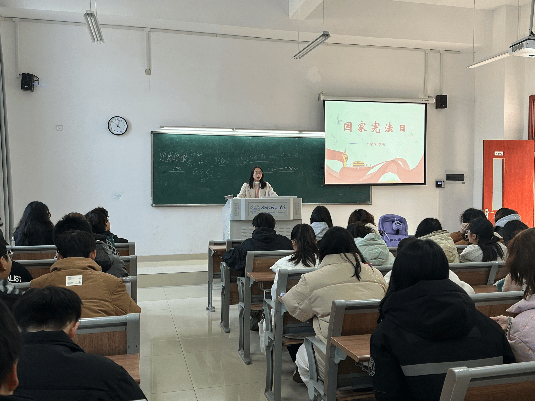 各年级辅导员和班委向同学们讲述了宪法在我国的重要地位,宪法是国家的根本大法,并通过讲解告诫大家要弘扬宪法精神,深刻认识并学习贯彻实施宪法的重大意义,自觉在宪法和法律范围内活动,引导同学们尊崇宪法、学习宪法、遵守宪法。