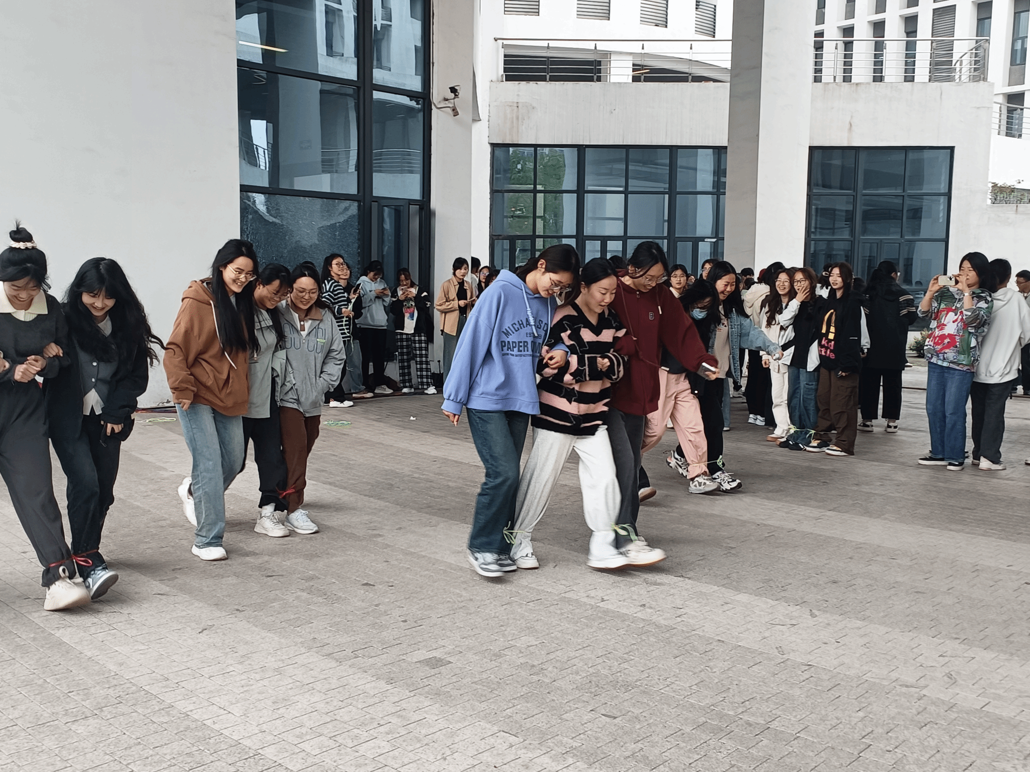 本次素质拓展活动分为四个项目:背对背夹气球跑、拔河比赛、三人四足游戏和托球接力跑。同学们热情高涨,在指定游戏点有序排队参赛,现场口号声和呐喊声相互交错,欢声笑语不断,每一项比赛都考验着参赛者的团队协作能力和竞技水平,队员们齐心协力、互相鼓励,展现出了积极向上的精神风貌。