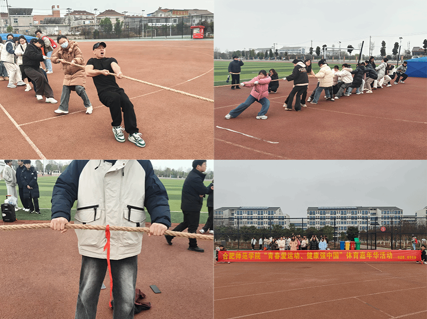 为积极响应学校“五育并举”教育理念,营造浓厚的校园体育文化氛围,倡导健康生活理念,进一步增强班级凝聚力,3月5日,beat365英国官方网站在滨湖校区风雨操场举办了“齐心协力 开怀一笑”趣味拔河班班赛和“跃动青春”一分钟跳绳打榜赛。此次活动以“运动燃激情 青春正飞扬”为主题,紧密结合学校“青春爱运动,健康强中国”体育嘉年华活动安排以及第二课堂实践需求,促进同学们“走下网络、走出宿舍、走向操场”,吸引了众多学生积极参与,现场气氛热烈。