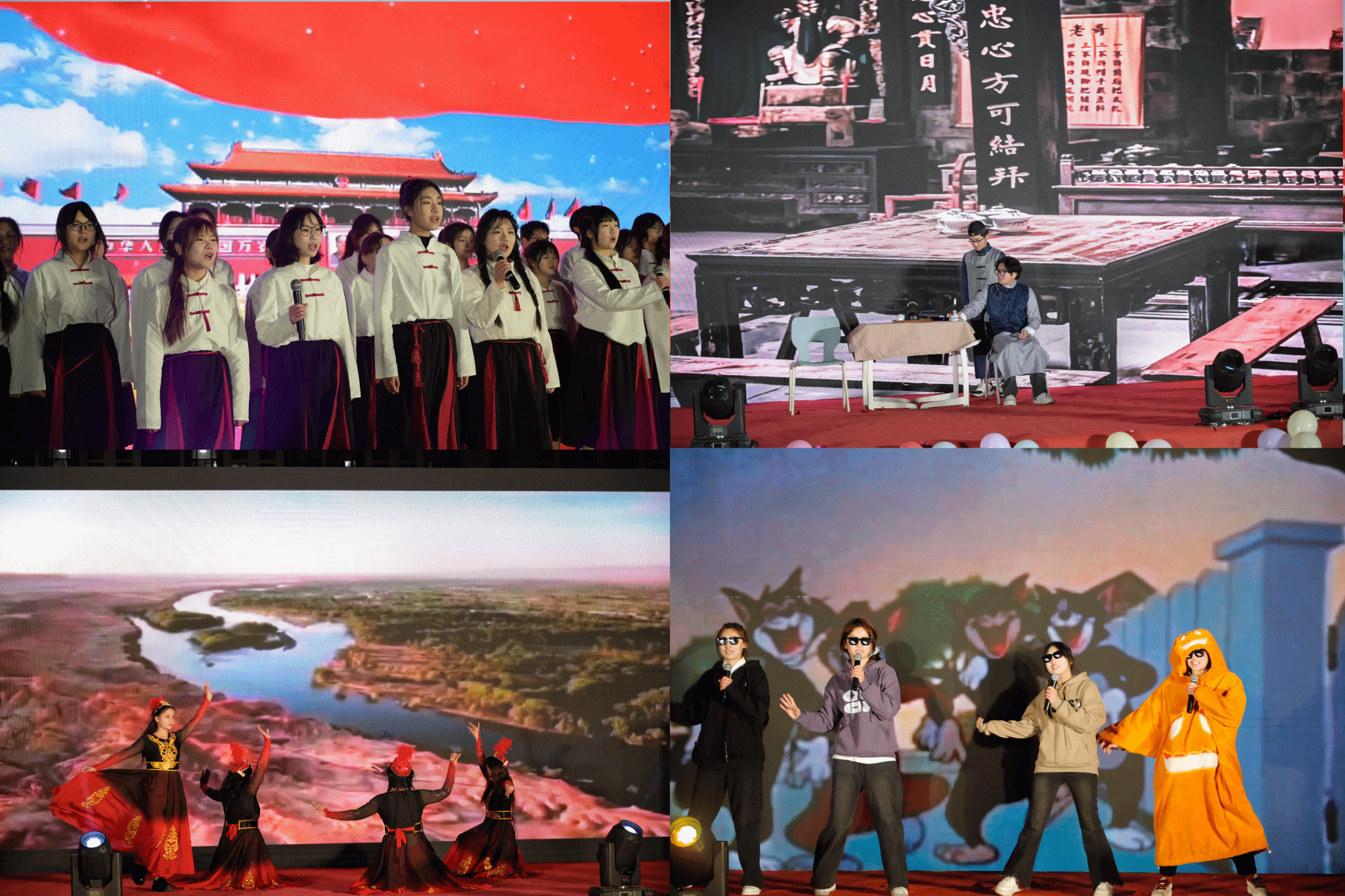 跨越新元,奔赴新愿,灯火辉煌的晚会舞台,诉说着文院学子回望过去的担当与实干,回响着展望2025年的祈愿与憧憬。乙巳新启、文院新韵、展耀新程,3个篇章拉开beat365英国官方网站元旦迎新晚会的精彩大幕。话剧、朗诵、舞台剧、器乐演奏、舞蹈、歌曲串烧等节目轮番上演,异彩纷呈的视听盛宴掀起现场阵阵热潮。话剧《字正腔圆》铿锵有力,古典舞《红马》意蕴悠长,大合唱《万疆》更是余音绕梁、气势磅礴。一幕幕生动的表演,一幅幅火红的画卷,文院学子用心、用情、用力传递着对祖国的无限热爱、对生活的无限热忱和对时代追梦的无限憧憬。