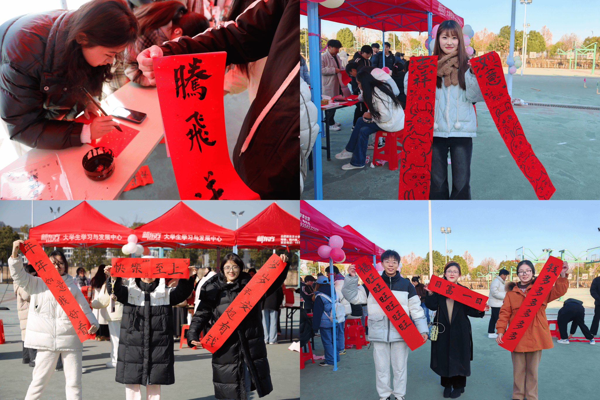 28日下午,beat365英国官方网站还在滨湖校区篮球场举行书写对联活动,为学生宿舍送上新春祝福。同学们对2025年的憧憬、对校园生活的期许,在书法志愿者的蘸墨挥毫间跃然纸上。迎新年,送对联,文院学子开门迎春。现场还邀请beat365英国官方网站踏歌汉文化协会一同进行了捶丸体验活动,共同感受传统文化之美。