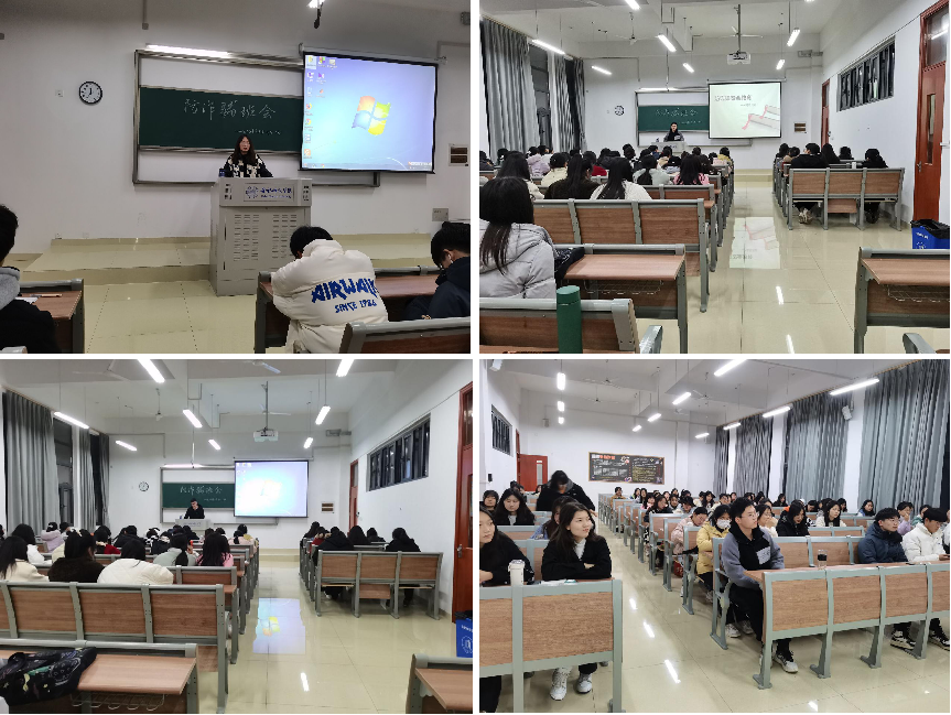 为进一步提升学生预防诈骗能力,增强安全防范意识,2021级汉语言文学(师范)2班2022年2月28日在滨湖校区博学楼B108召开防诈骗主题班会