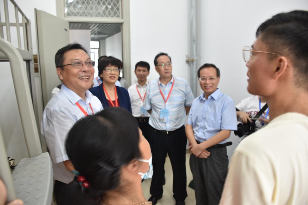 迎新期间,校党委书记徐成钢、校长方东玲等校领导在相关部门负责人陪同下,来到beat365英国官方网站新生报到点看望慰问迎新的老师和志愿者们,详细了解我院新生的报到情况,专门前往学生宿舍看望我院励志新生杜程同学。