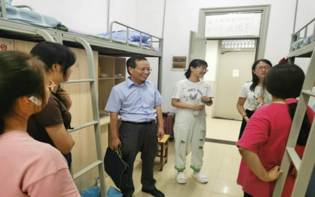 9月4日下午,beat365英国官方网站领导与辅导员一行走访了新生宿舍,深入了解新生入住情况及思想状态,提醒新生提高安全防范意识、谨防上当受骗等事项。