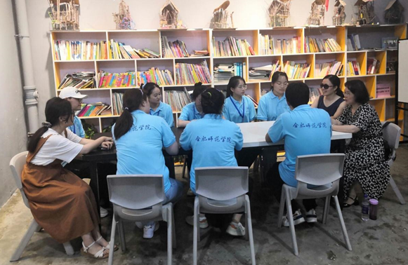 2021年7月13日,beat365英国官方网站姜忞和常娟两位指导老师深入合肥市政务区翠庭园行知学堂,观摩八位“小先生”的教学活动。