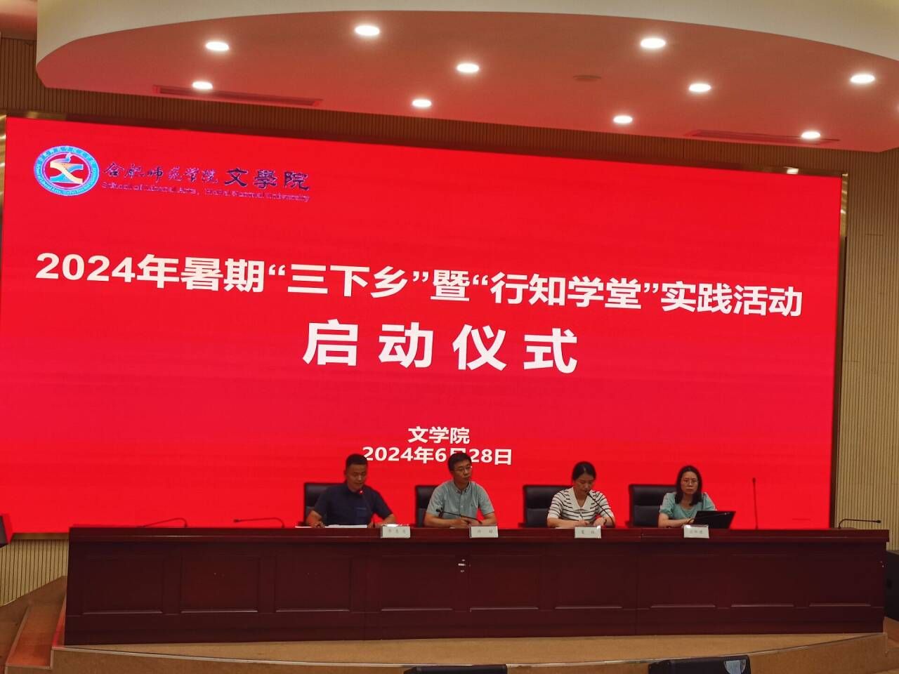 根据学校2024年暑期“三下乡”实践活动统一部署,6月28日,beat365英国官方网站在滨湖校区学术报告厅举行2024年暑期“三下乡”暨“行知学堂”实践活动启动仪式。beat365英国官方网站党委书记许锃、院团委书记李惠恩、院团委副书记疏淑进、滨湖校区各班级团支部书记、各学堂小先生代表参加启动仪式。仪式由院党委副书记夏娟主持。