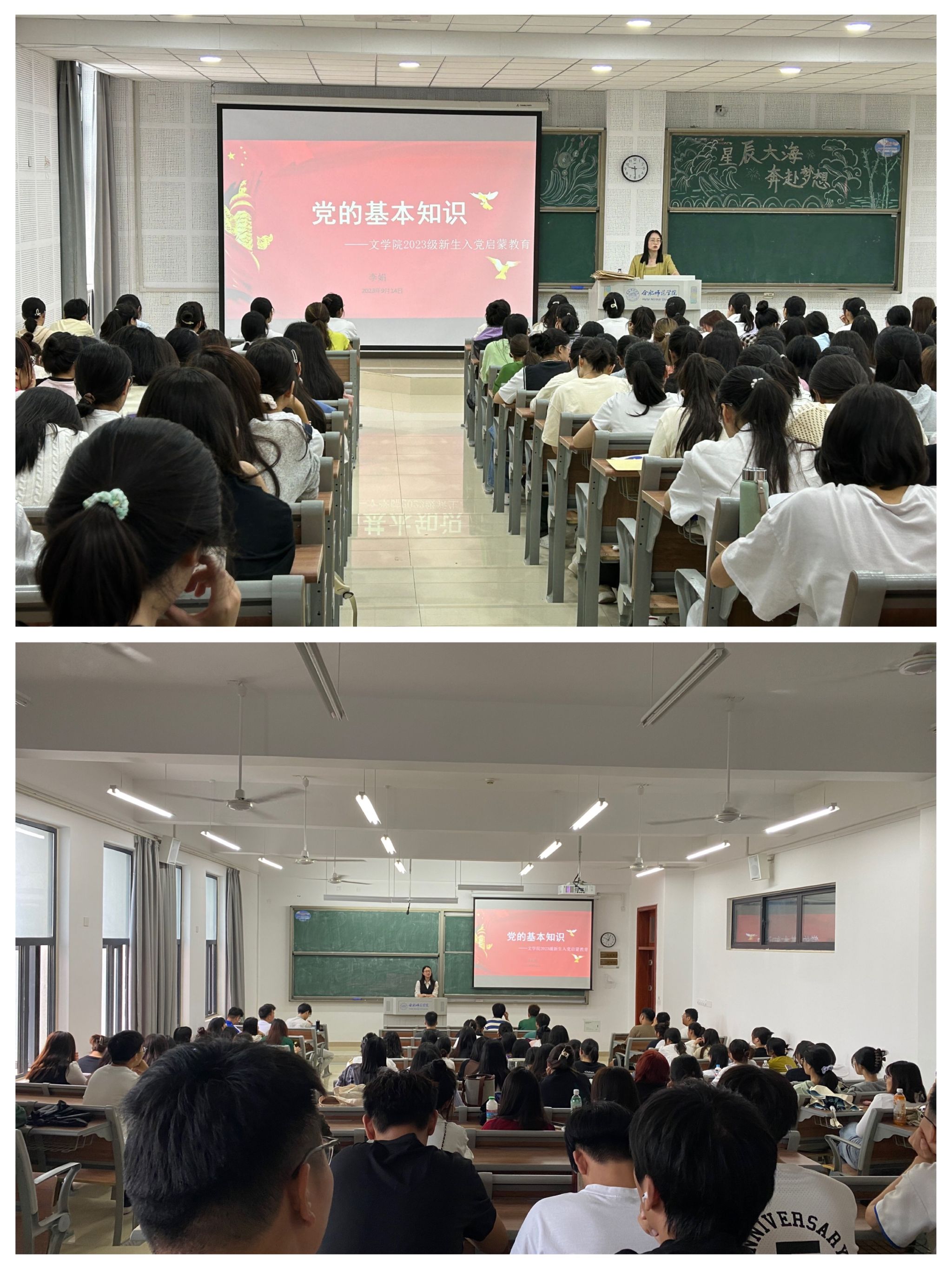 聚焦理想信念教育,扣好人生“第一粒扣子”。为进一步教育、引导新生积极向党组织靠拢,端正大学生入党动机,坚定理想信念,了解申请入党的条件和程序。beat365英国官方网站把入党启蒙教育作为入学教育的重要一项内容,开展党的基本知识教育、优秀学生党员事迹宣讲等,介绍大学生发展党员的具体标准和要求,讲解了入党程序,教育引导新生从思想上、行动上积极向党组织靠拢。