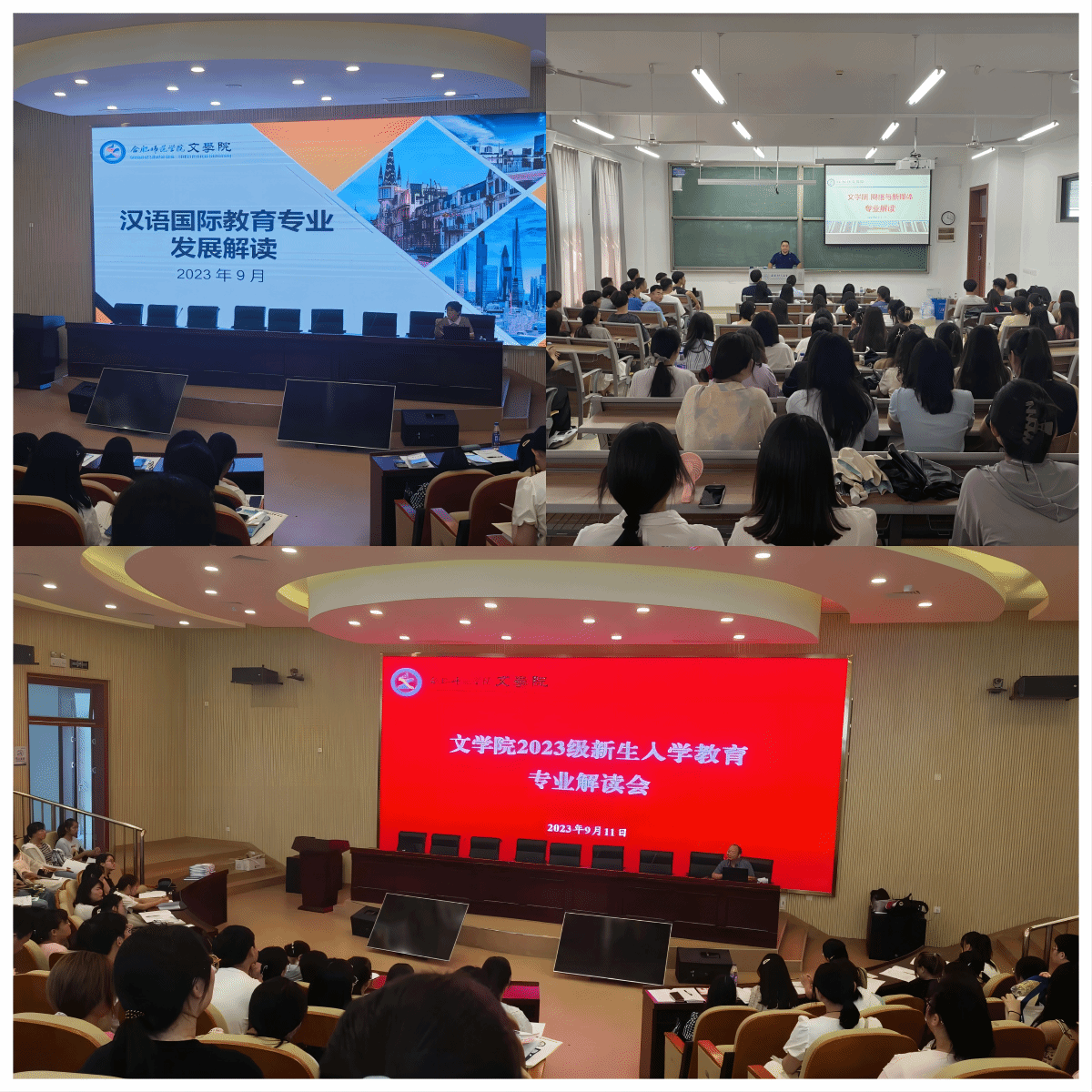 聚焦专业认知教育,上好开学第一课。新生入学后,beat365英国官方网站第一时间组织召开2023级新生见面会,开展校情院情、专业发展等教育。组织中文系、新传系主任和汉语言文学、网络与新媒体、汉语国际教育等专业负责人进行专业认知教育,从专业简介、学习内容、发展前景以及发展方向等多个方面让新生全面认识自己所学专业,为新生学习提出建议、提供咨询,引导新生筑牢专业思想。