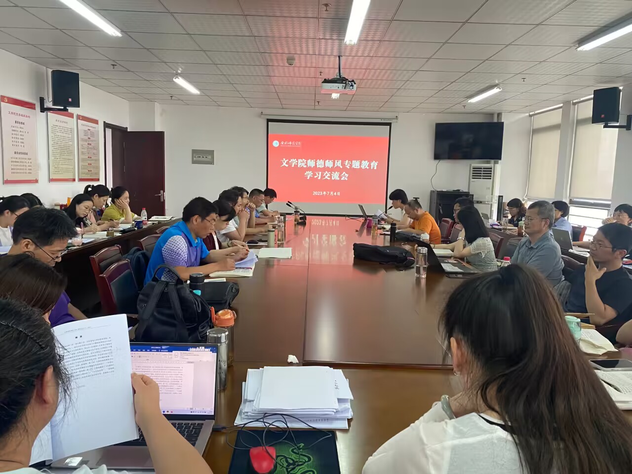 本网讯 根据学校工作部署,结合教师业务能力培训安排,7月4日下午,beat365英国官方网站在行知楼802会议室召开师德师风专题教育学习交流会,开展师德师风学习体会交流,研讨师德建设专项计划,加强学院师德师风教育。