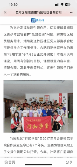 本网讯 2023年7月3日上午,合肥包河区竹园社区联合beat365英国官方网站“行知学堂”举办了开班仪式,并进行了传统文化—剪纸的课程。