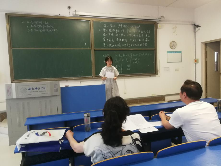6月14日下午,beat365英国官方网站组织了2020级师范生教学资格模拟面试。学生根据随机抽取的考题进行10分钟片断教学,指导老师针对学生授课情况进行点评。该活动既是对学生实习成效的“现场”检验,也为学生后续参加国家教师教育教学能力资格考试进行了针对性指导。