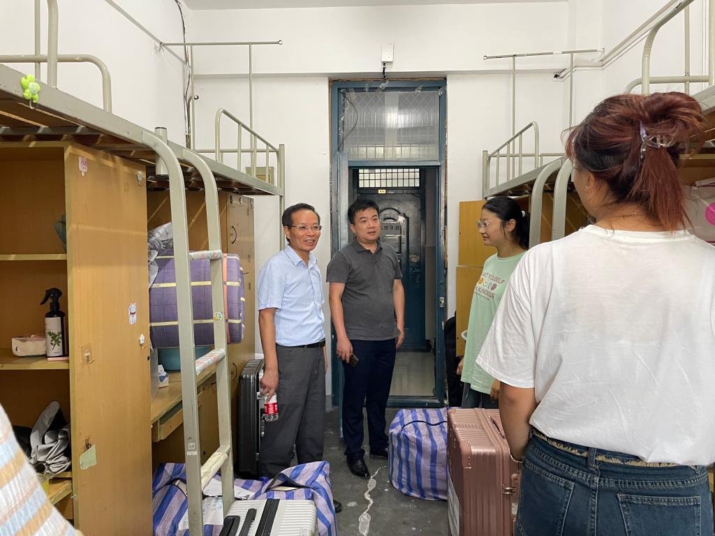 为保障学院搬迁工作和返校工作安全、有序、平稳进行,进一步详实了解返校学生思想动态、学习和生活情况,9月2日——9月4日期间,beat365英国官方网站党委书记李旺生、党委副书记陈好和全体辅导员深入走访锦绣校区和滨湖校区学生宿舍,看望慰问学生。