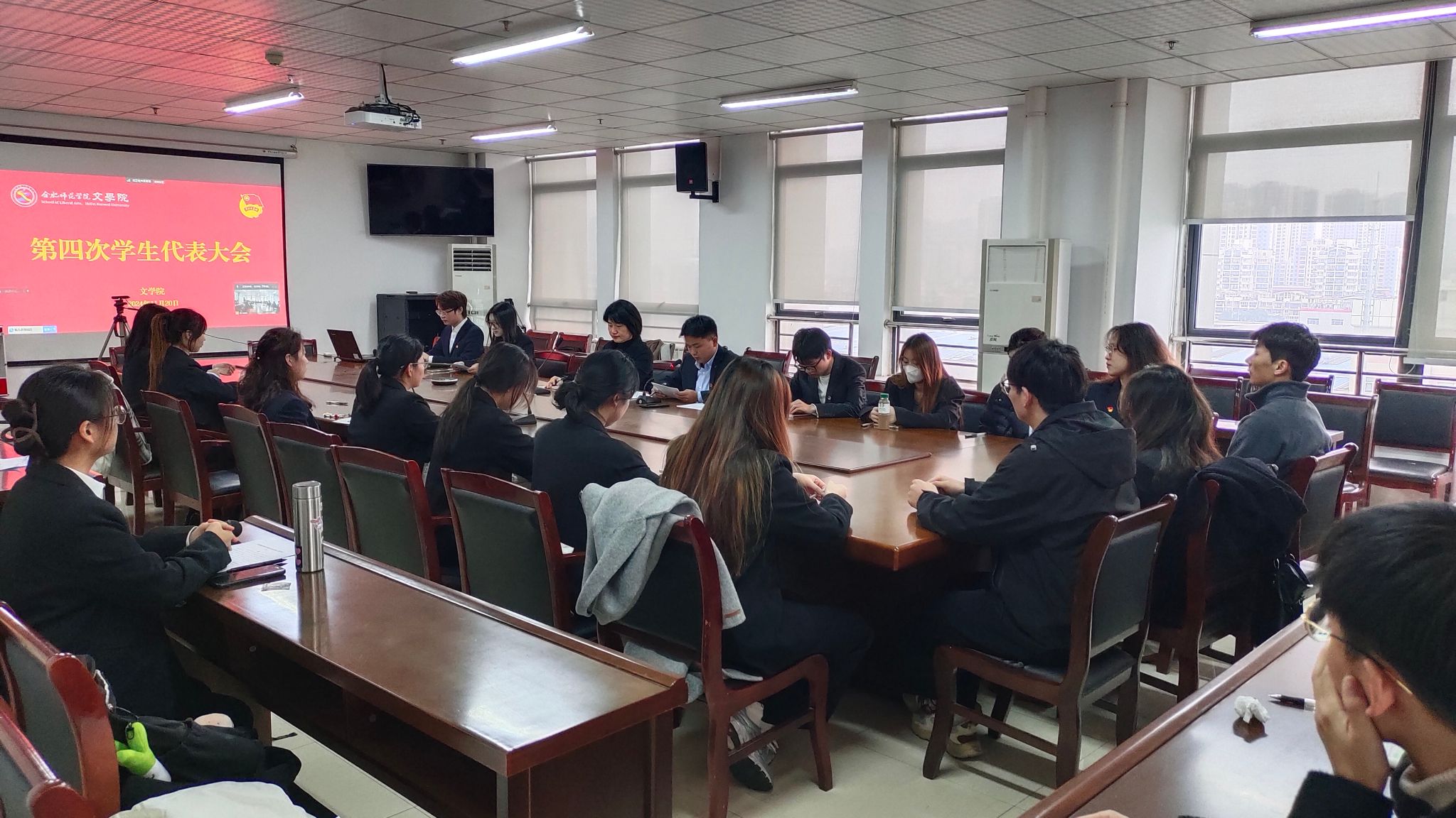 11月20日,beat365英国官方网站第四次学生代表大会在锦绣校区行知楼802会议室召开,滨湖校区在铭传楼B306设分会场。beat365英国官方网站党委副书记夏娟、团委书记李惠恩,来自beat365英国官方网站各班级的53名学生代表参加会议。会议由李惠恩主持。