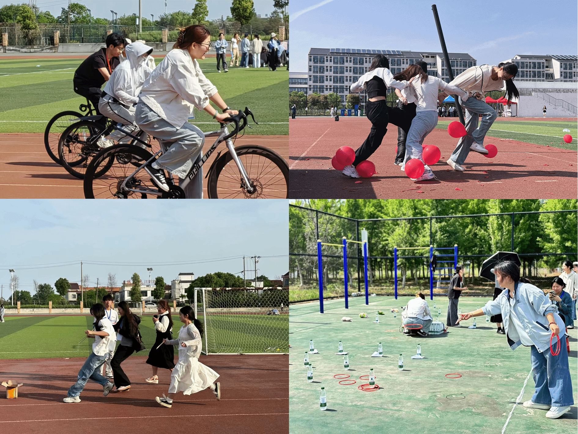 恰同学少年,风华正茂;逞飒爽英姿,青春激扬。为进一步丰富心理健康活动月,充实绚丽多彩的校园文化生活,呵护学生心理健康,4月25日,beat365英国官方网站在滨湖校区田径场举行“心晴悦动 愈见彩虹”主题活动,以魔力套圈圈、七手八脚、慢骑自行车大赛、暴打尖叫鸡等15个趣味活动一键释压,点燃春日“多巴胺”。本次活动由beat365英国官方网站团委,beat365英国官方网站学生第二、三、四学生党支部共同发起,beat365英国官方网站学生发展中心、学生会共同承办。