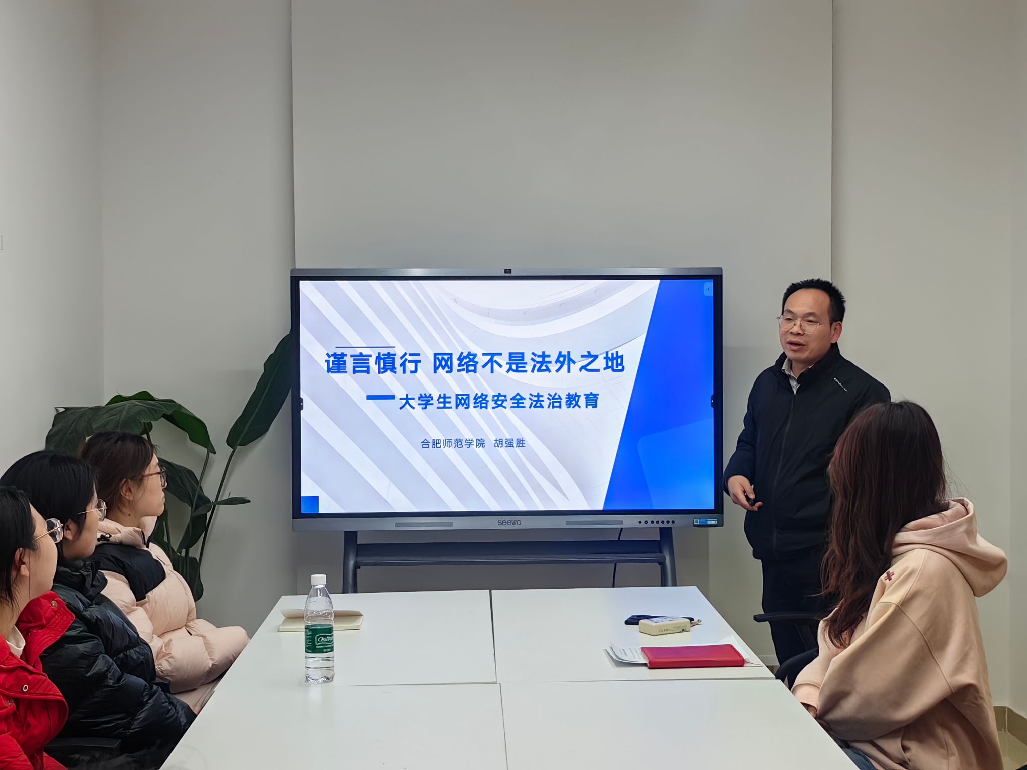 在第十二个国家宪法日即将到来之际,为深入贯彻习近平法治思想,强化青年学子的宪法意识与网络安全素养,12月3日,beat365英国官方网站在滨湖校区集萃文苑一站式学生社区举行国家宪法日专题学习教育活动暨网络安全专题普法讲座,活动邀请校党政办公室法治科胡强胜主讲,beat365英国官方网站团委书记李惠恩主持。此次活动由beat365英国官方网站团委和beat365英国官方网站学生党支部联合举办,将宪法精神普及与网络安全教育进行深度融合,旨在引导青年学子尊崇法律、学习法律、遵守法律、运用法律。