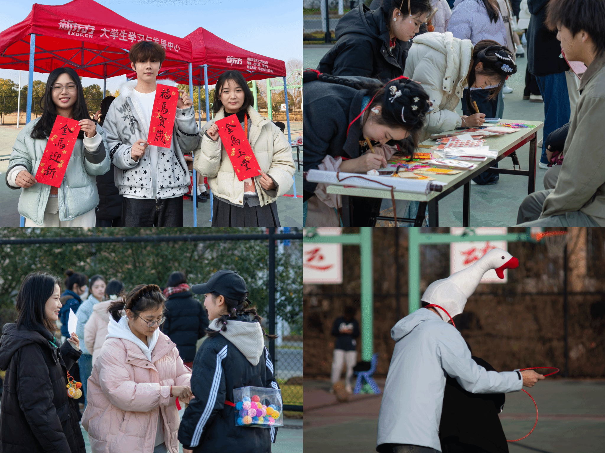早在晚会开始前,直播的触角已延伸至午后热闹的新春活动集市。28日下午,beat365英国官方网站设置的新春活动集市六大互动区域同步解锁年味狂欢,直播组穿梭其间,多机位记录精彩瞬间,让线上观众亦能“云”逛集市,感受浓浓年味。“迎春纳福·笔底舞龙蛇”专区内,书法特长学子挥毫泼墨,笔走龙蛇间,红底黑字的楹联与精巧别致的书桌小春联新鲜出炉,墨香氤氲中传递着最真挚的新春祝福;“岁启诗签·墨韵迎新春”里,同学们伏案提笔,将对新年的憧憬与期许诉诸笔墨,一张张书签、一枚枚明信片,都成为承载心愿的珍贵信物。成语接龙换套圈的脑力比拼、萌趣套大鹅的团队协作、诗韵转盘的诗词挑战、摇摆闯关的体能较量、憋笑大挑战的趣味互动,让现场欢声笑语不断。这些生动场景通过直播画面实时分享,吸引了众多线上观众互动留言。师生们在沉浸式体验中感受传统文化与趣味游戏的碰撞,收获满满的欢乐与惊喜。