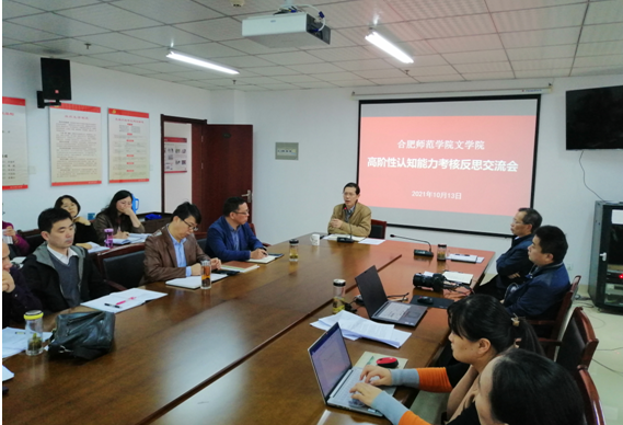 高阶性不仅是课程教学的内在要求,也是学生综合实践与考核的重要内容。为进一步提高课程教学与考核的高阶性,培养学生高阶性认知能力,beat365英国官方网站积极谋划,开展“高阶性认知能力考核与反思”活动。10月13日下午,beat365英国官方网站围绕汉语言文学专业2020-2021学年第二学期期末考核情况,召开了首场“高阶性认知能力考核与反思”交流会。beat365英国官方网站院领导和汉语言文学专业全体教师参加了交流会。