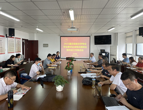在师范生培养过程中,做好毕业要求达成情况的分析与反馈是检验人才培养质量的重要手段,也是发现、反思与改进人才培养工作中问题的重要数据来源。为持续改进毕业要求达成情况,有效提升人才培养质量,明差距、补短板、强弱项,8月16日下午,beat365英国官方网站召开2021届汉语言文学专业毕业生毕业要求达成情况通报会暨人才培养改进工作推进会。beat365英国官方网站领导班子成员、汉语言文学专业全体任课教师、学生辅导员、院教学质量管理组成员等40余人出席了通报会。