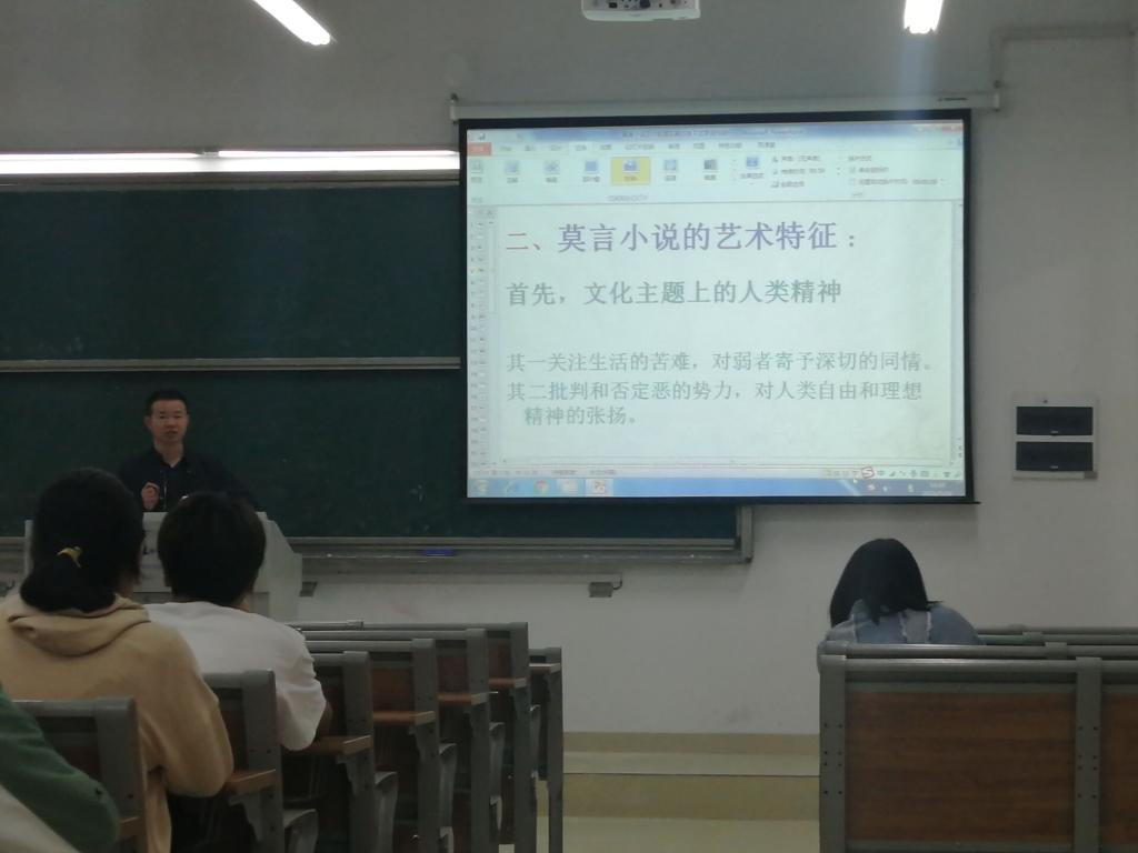 5月19日下午,beat365英国官方网站瞿华兵教授在滨湖校区博学楼A105教室作了题为“莫言小说艺术肌理及其对当下文学创作启示”的学术讲座,汉语言文学和汉语国际教育的部分学生聆听了讲座。