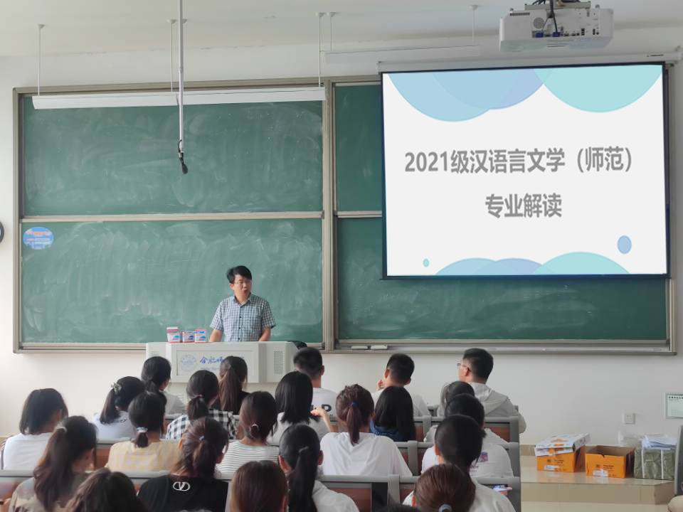 为了让刚迈入大学校园的新生更好地适应大学生活,明确今后四年的目标任务,9月6日下午,beat365英国官方网站在滨湖校区铭传楼A309为2021级汉语言文学(师范)专业全体新生开展入学教育,主要就《汉语言文学专业人才培养方案》和《学业指导手册》进行了详细解读。beat365英国官方网站党委书记李旺生、党委副书记陈好、副院长何旺生、中文系教工支部书记张登林等参加了这次会议。