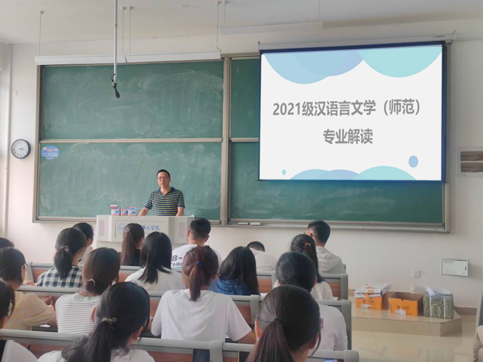 何旺生副院长主要围绕汉语言专业为新生介绍了《学业指导手册》的设计及学业规划书、课程学习计划书的内容和填写事项,希望新同学从通识教育、专业教育、教师教育、职业实训、素质拓展等方面全方位、多层次的提高自身素质,努力实现德智体美劳全面发展。
