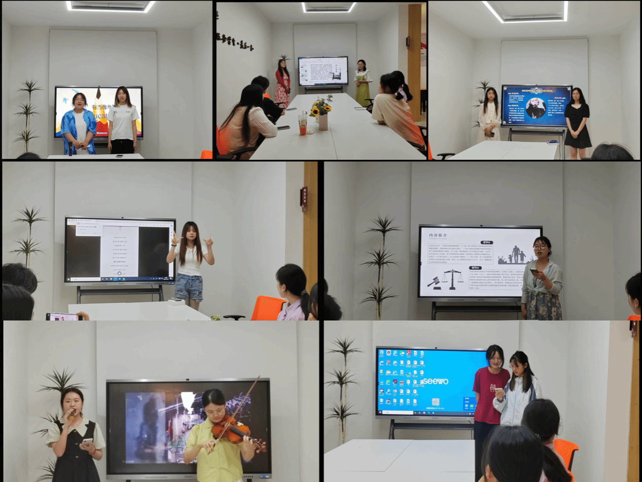 活动中,七组同学们通过不同的方式表达自己对名著的热爱和感悟。第一组的《解忧杂货铺》,队员们齐唱著作电影版的主题曲,和谐的音乐让原本印染在书中的文字更具感染力;第二组的《望江南》,队员们给评委们品闻茶叶,伴着小提琴演奏演唱《烟雨行舟》,让在场的同学们身临其境感受江南独有乡土风味;第三组的《杀死一只知更鸟》,队员们结合影视作品,围绕着主题“爱”展开叙述,呼吁我们拒绝种族歧视,避免偏见;第四组的《豆腐》,队员们结合安心手语操,给观众带来莫大的安慰和鼓励,让观众和评委感受到文学著作给人带来的深刻体会;第五组的《简爱》,队员们的原声朗读给予我们莫大的精神力量和启示,告诉了我们要追求人性中的勇敢,独立和自由;第六组的《活着》,队员们邀请评委给片段配音,并且朗诵泰戈尔《生命》,感受百年文字深沉厚重之魅力;第七组的《你当像鸟飞往你的山》,队员们结合自身经历,强调教育的重要性,勇于面对挑战,励志去偏远乡村支教。