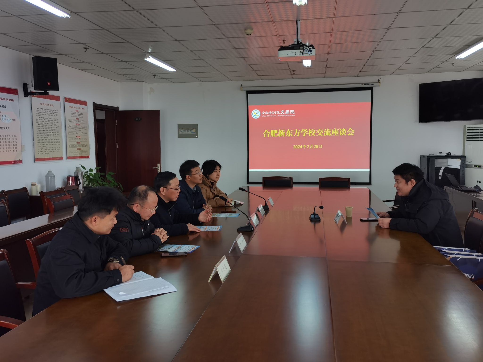 为拓宽2024届毕业生就业渠道,加强校企合作交流,2月28日,beat365英国官方网站利用安徽省高校毕业生“暖心帮扶”专场招聘会机会,邀请合作的新东方合肥学校来院洽谈,就毕业生就业工作、学生实习实训合作和基地建设等方面就展开交流。院领导许锃、何旺生、夏娟、甘松、毕业年级辅导员参加座谈。