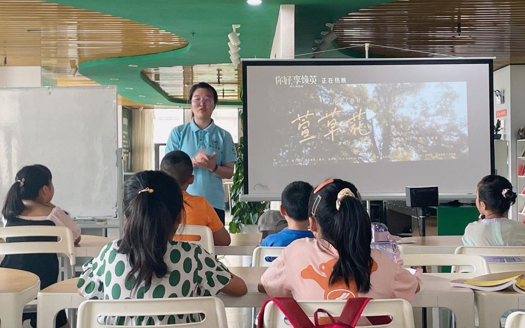 欣赏完美妙的歌曲后,2021级物理师范专业的陈赟同学作为小先生代表作总结发言。陈赟同学用幽默轻松的语气指出,行知学堂使得这个暑假变得意义非凡,云华社区的孩子们带给了她太多惊喜与感动,希望来年仍然有机会和孩子们相处。