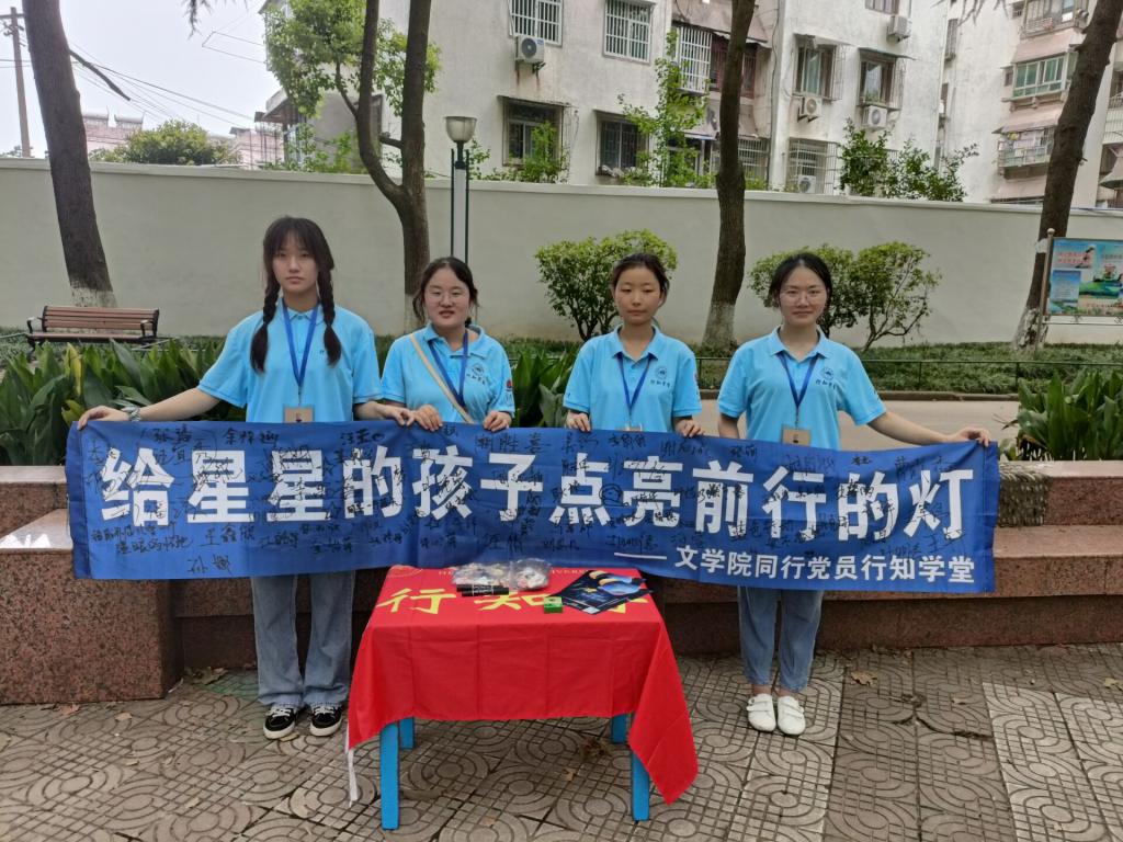 2022年8月3日下午3时,安庆同行党员行知学堂的8名小先生来到安庆市菱湖公园顺利举办主题为“拥抱星星,融化偏见”的主题宣传活动。本次活动由2021级汉语言文学(师范)专业吴巧组织,“起点”党委委员夏苇与各特殊教育指导教师指导进行。