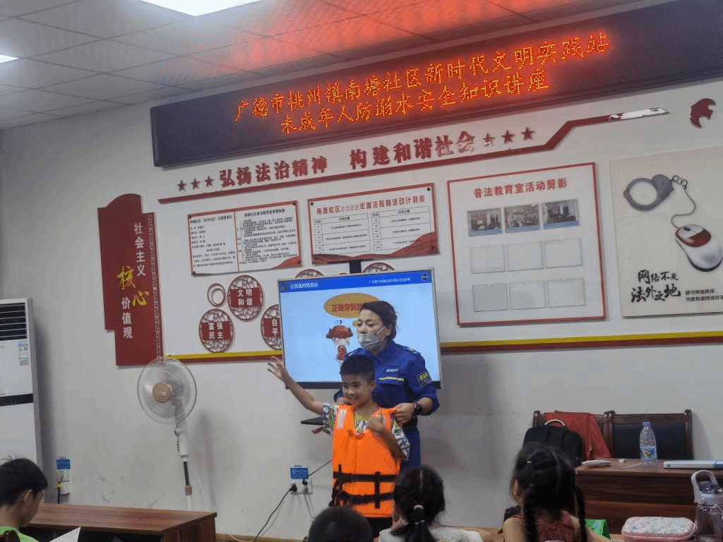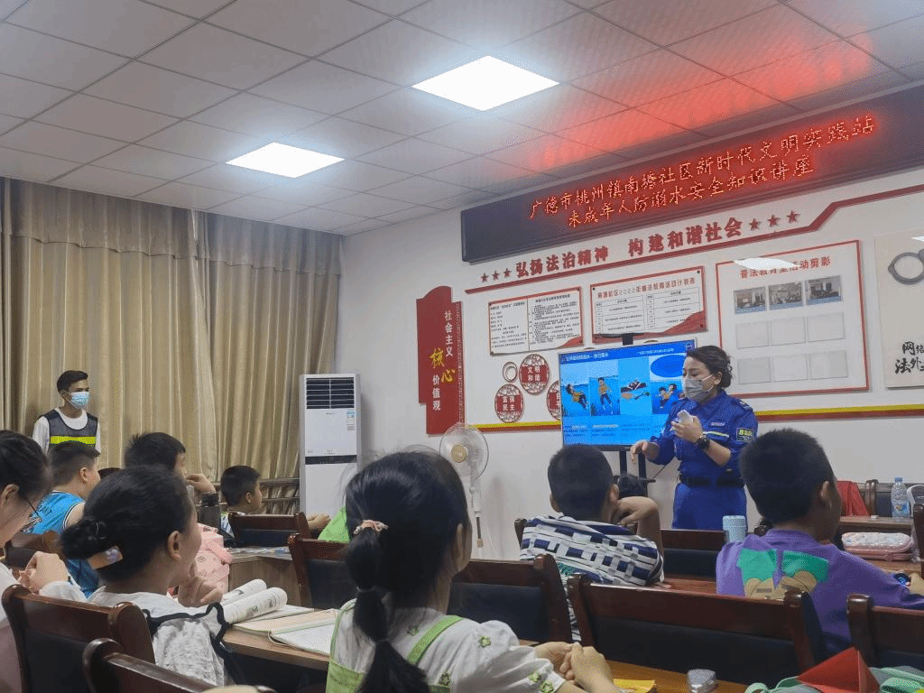 炎炎夏日,为了全面提高学生的安全意识,帮助广大学生增强防溺水安全意识、掌握防溺水知识技能、提高自救和他救能力,2022年8月3日下午三时,南塘社区七彩课堂认真落实“安全第一,预防为主”的方针,紧紧围绕“珍爱生命,远离溺水”的主题,在这里举行了一场别开生面的“防溺水”安全教育专题讲座,在这里我们有幸邀请到了蓝天救援队队员来给同学们演讲展示。