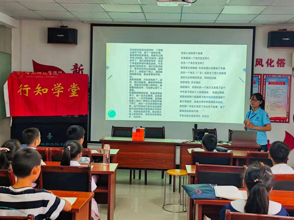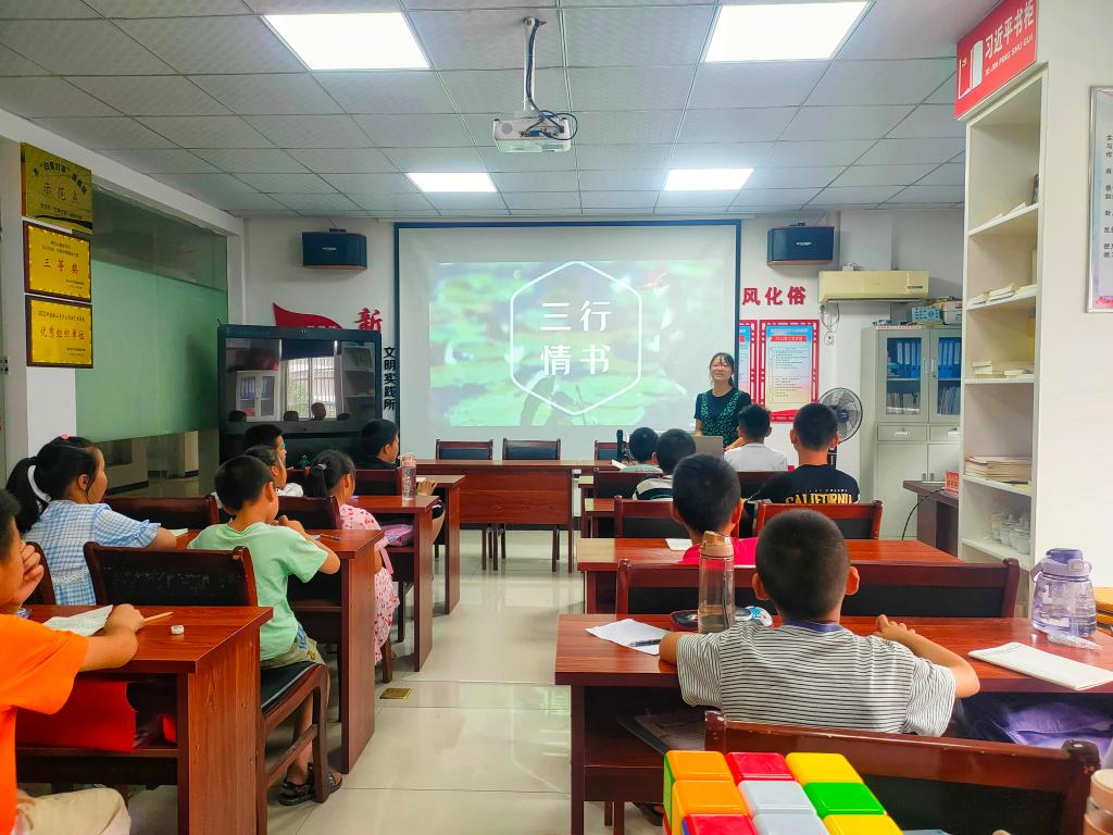 为了锻炼小学员的创意思维,源潭行知学堂特此开展“创意写作”课程。该系列课程由汉语言文学(师范)专业21级学生华青青主讲,她根据专业知识将本次创意写作课程分为三大板块,即三行情书、卡片写作和小组写作。
