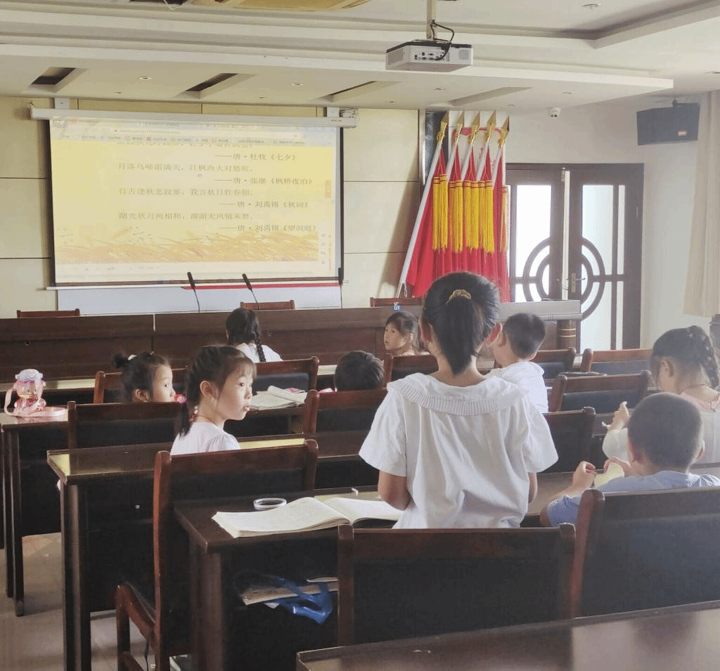 为了弘扬和传承中国传统文化,激发同学们对古诗词的学习热情和兴趣,7月12日上午,小先生们在池州经济技术开发区流坡社区办公楼为小学员们带来了一堂诗歌余韵课程。