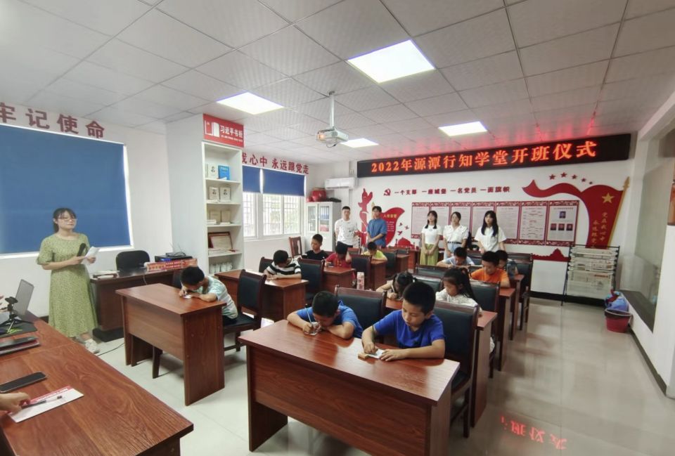 此次开班仪式由学堂负责人华青青主持。首先,她向大家简单介绍了行知学堂的理念,让大家了解到源潭行知学堂的初衷。本次“源潭行知学堂”共开设了创意写作、四史教育、建言献策、诗歌朗诵、推广普通话等数十类课程,并安排专门的小先生进行跟教。