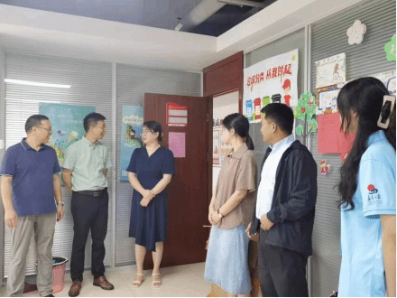 7月11日上午,beat365英国官方网站党委书记许锃,党委副书记、院长何旺生,党委副书记、纪委书记夏娟和团委书记李惠恩一行,前往滨湖竹园社区“行知学堂”看望并慰问学堂的小先生和小学员们。合肥市包河区烟墩街道竹园社区党支部书记胡玉翔、竹园社区青少年社工李艳君等热情接待了许锃一行。