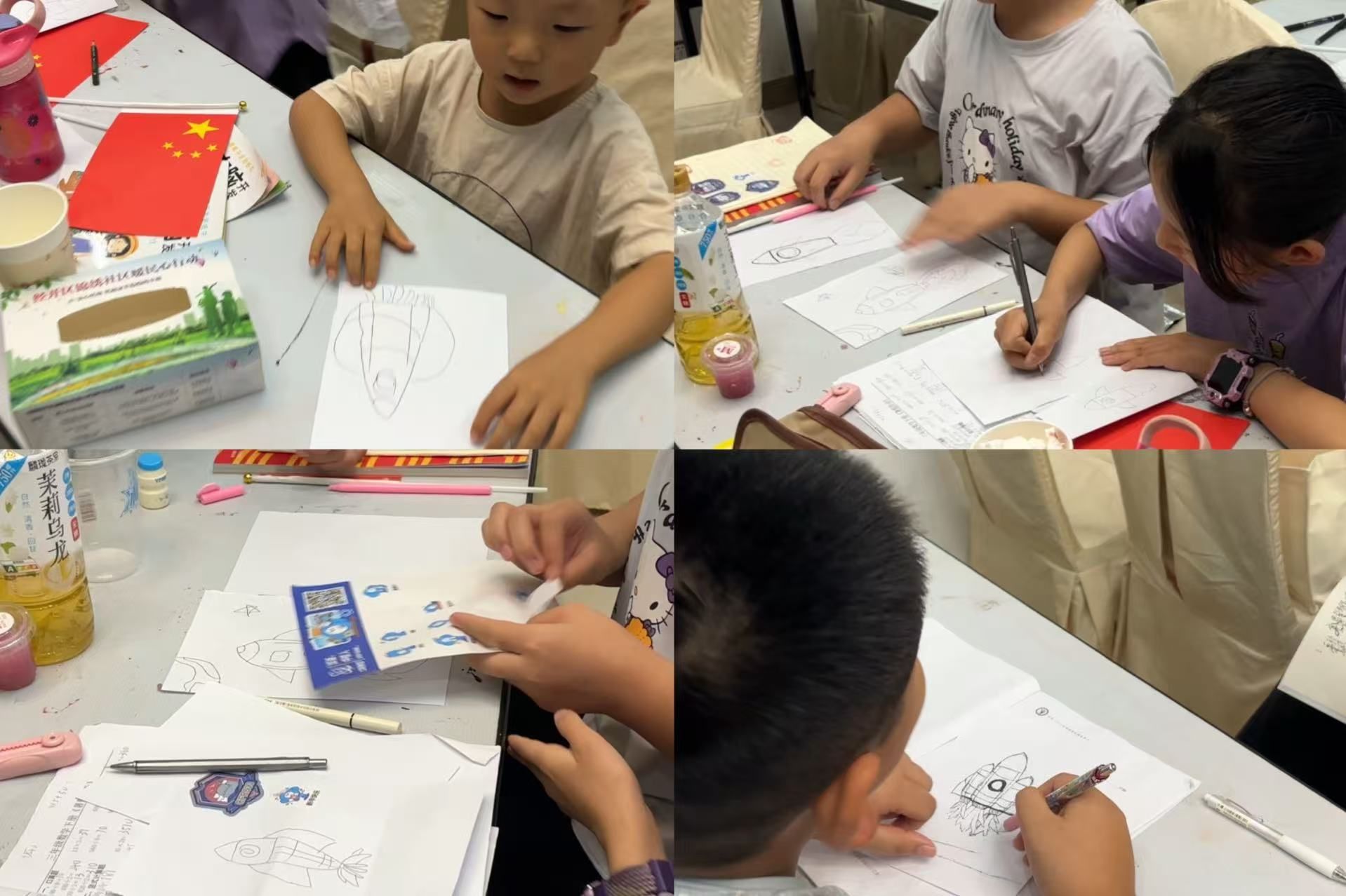 图为锦绣方兴社区翰林行知学堂学员绘制作品展示