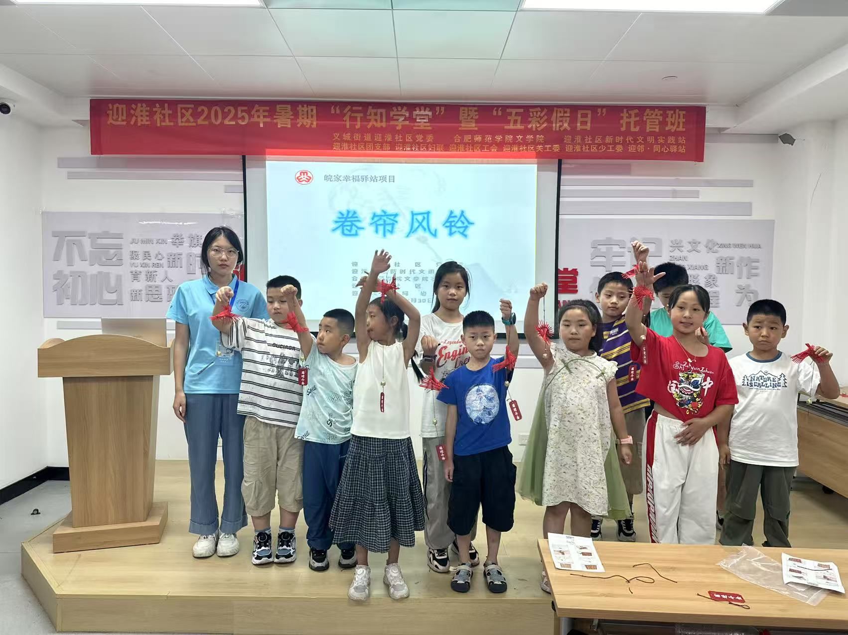 为厚植青少年文化自信,激活社区非遗传承基因,迎淮社区行知学堂携手迎邻·同心驿站,于7月精心策划推出“非遗进社区·匠心伴成长”主题系列活动。作为本季活动的压轴之作,7月30日开展的卷帘风铃制作体验课,以“历史溯源+匠艺实践+创意表达”的立体化教学模式,为20余名社区青少年开启了一场穿越千年的文化对话,为暑期文化生活画上诗意句点。